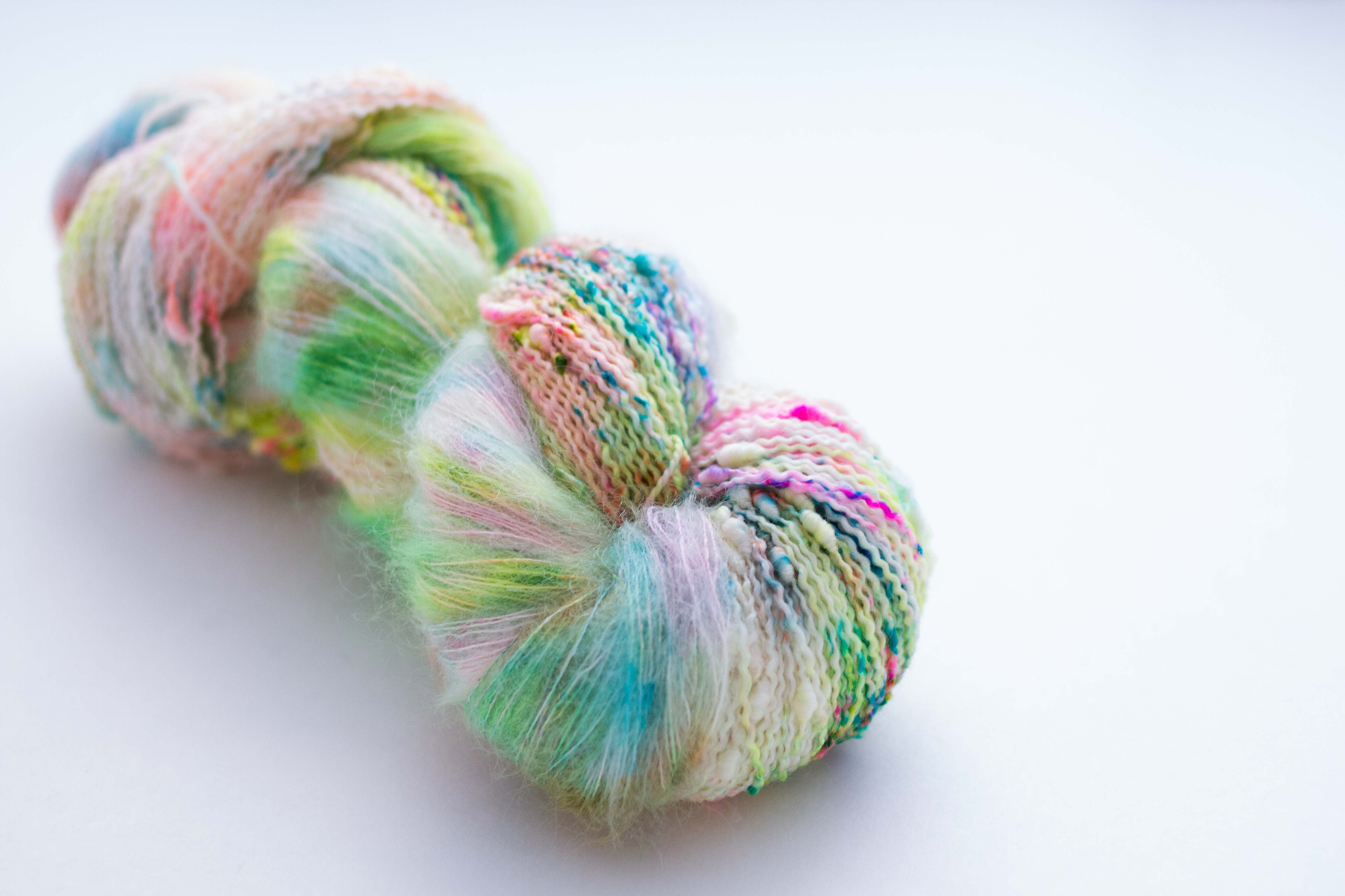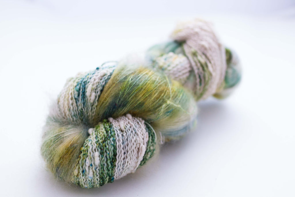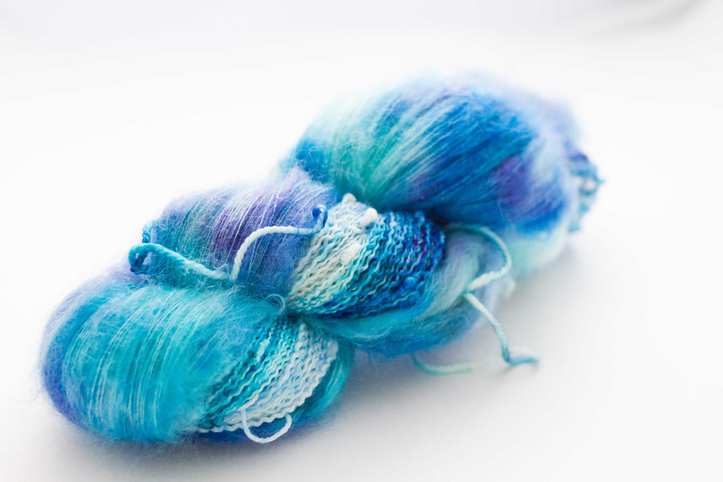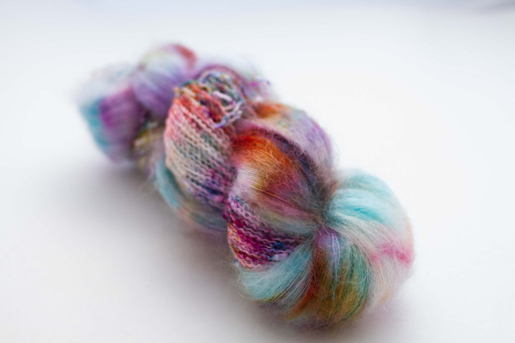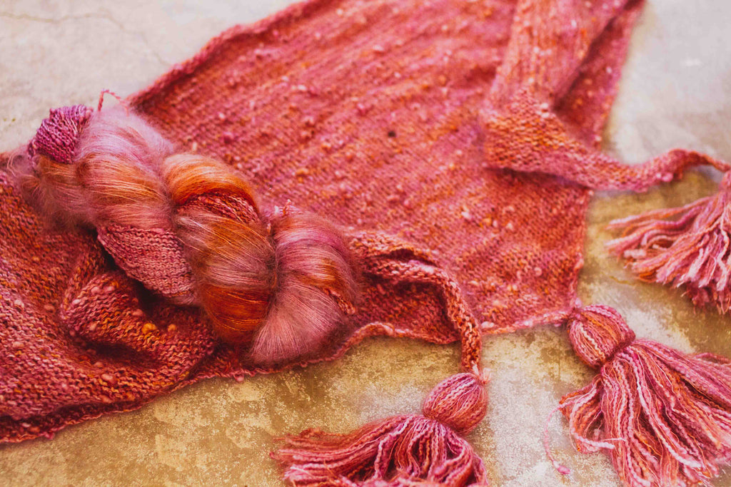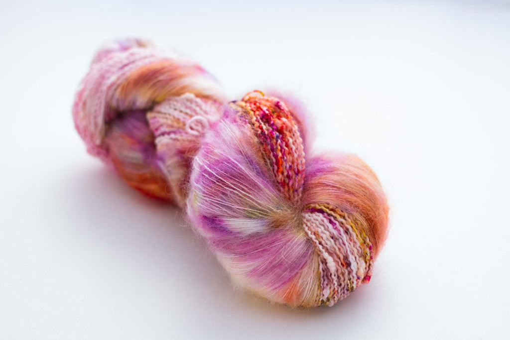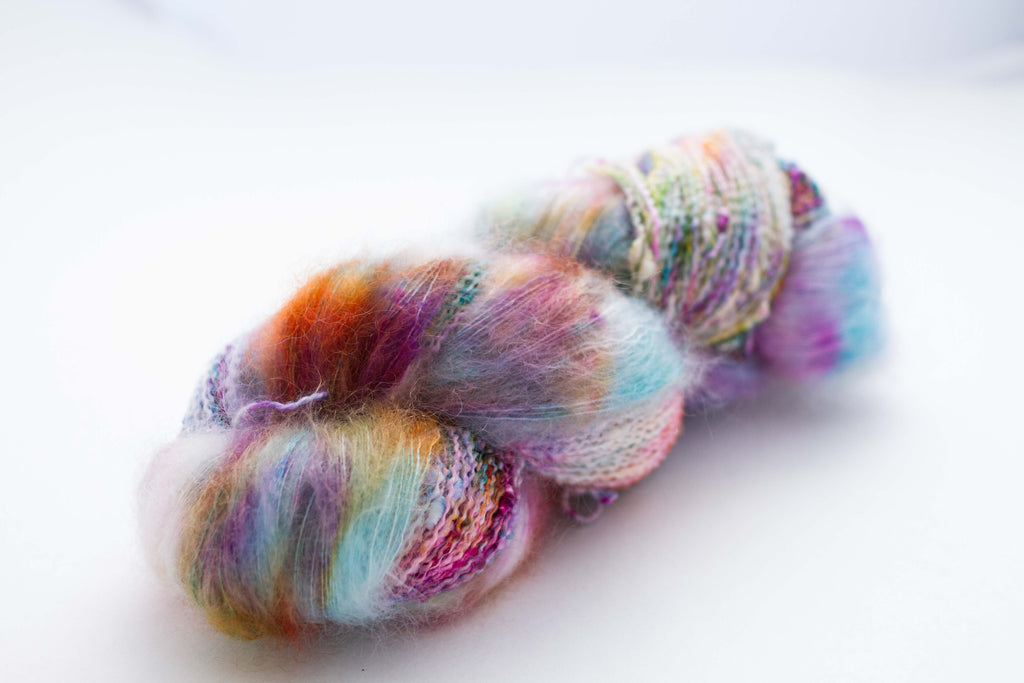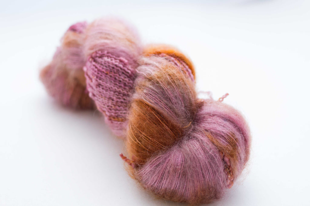 each set contains 2 skeins- one Mohair Silk Lace and one Slub or Zebra dyed in the same colorway